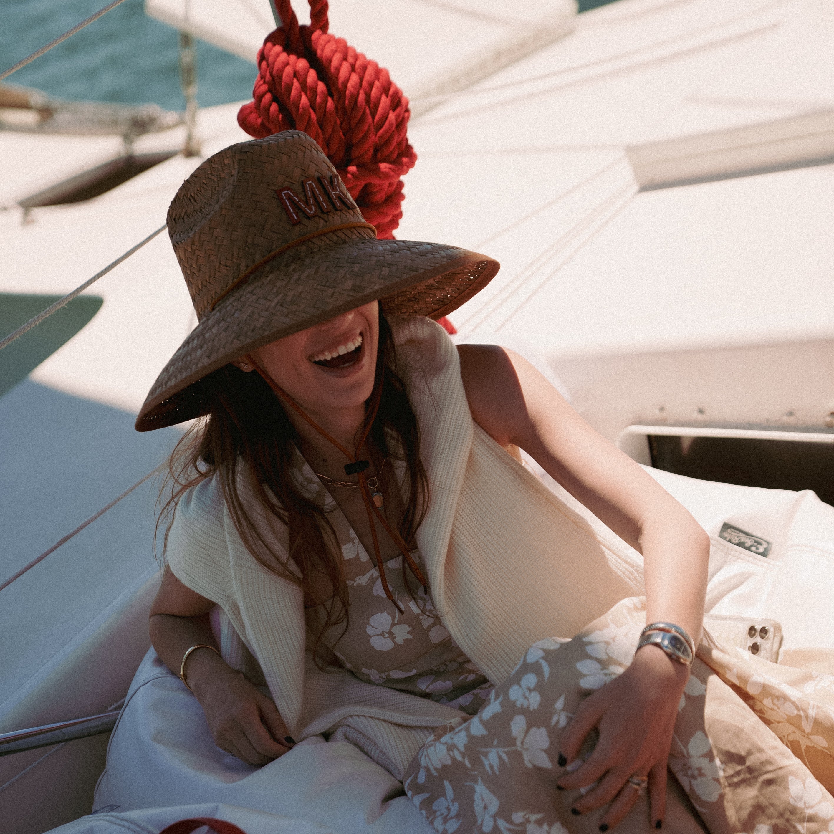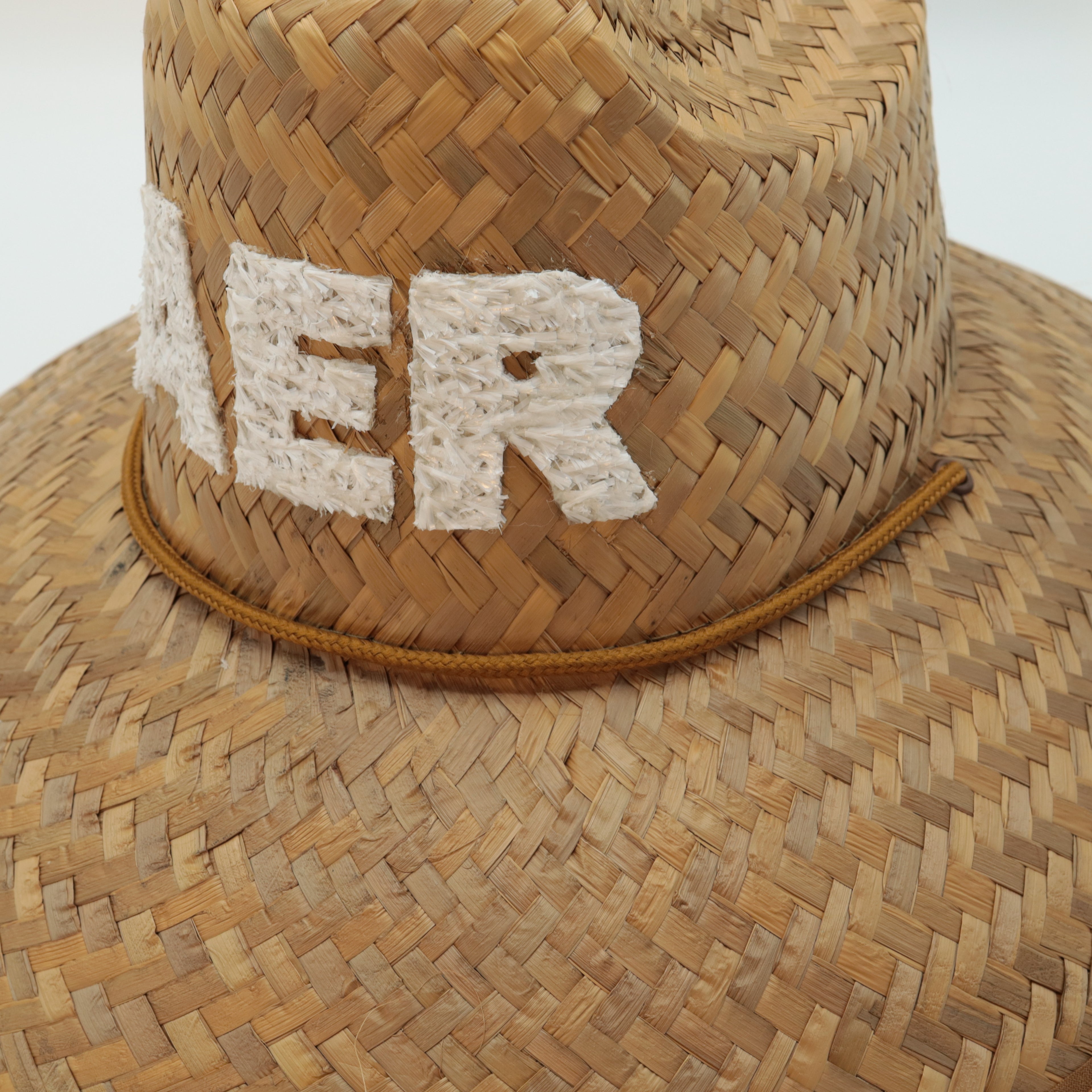 CUSTOM INITIAL/WORD FAUX GRASS STRAW HATS (CHOOSE 1-8 LETTERS)