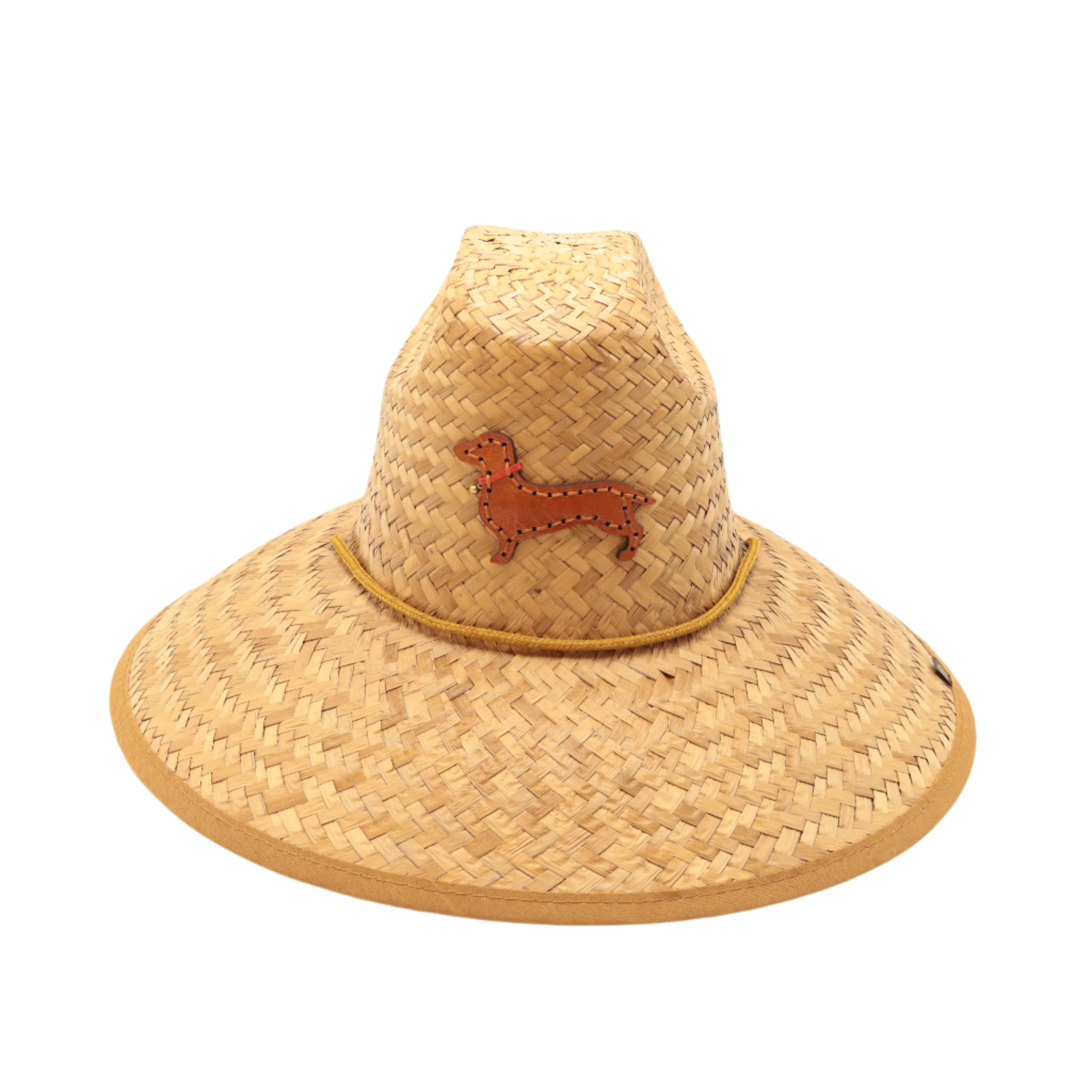STRAW HAT - BROWN DACHSHUND WITH RED COLLAR - BRIDLE LEATHER *LIMITED EDITION