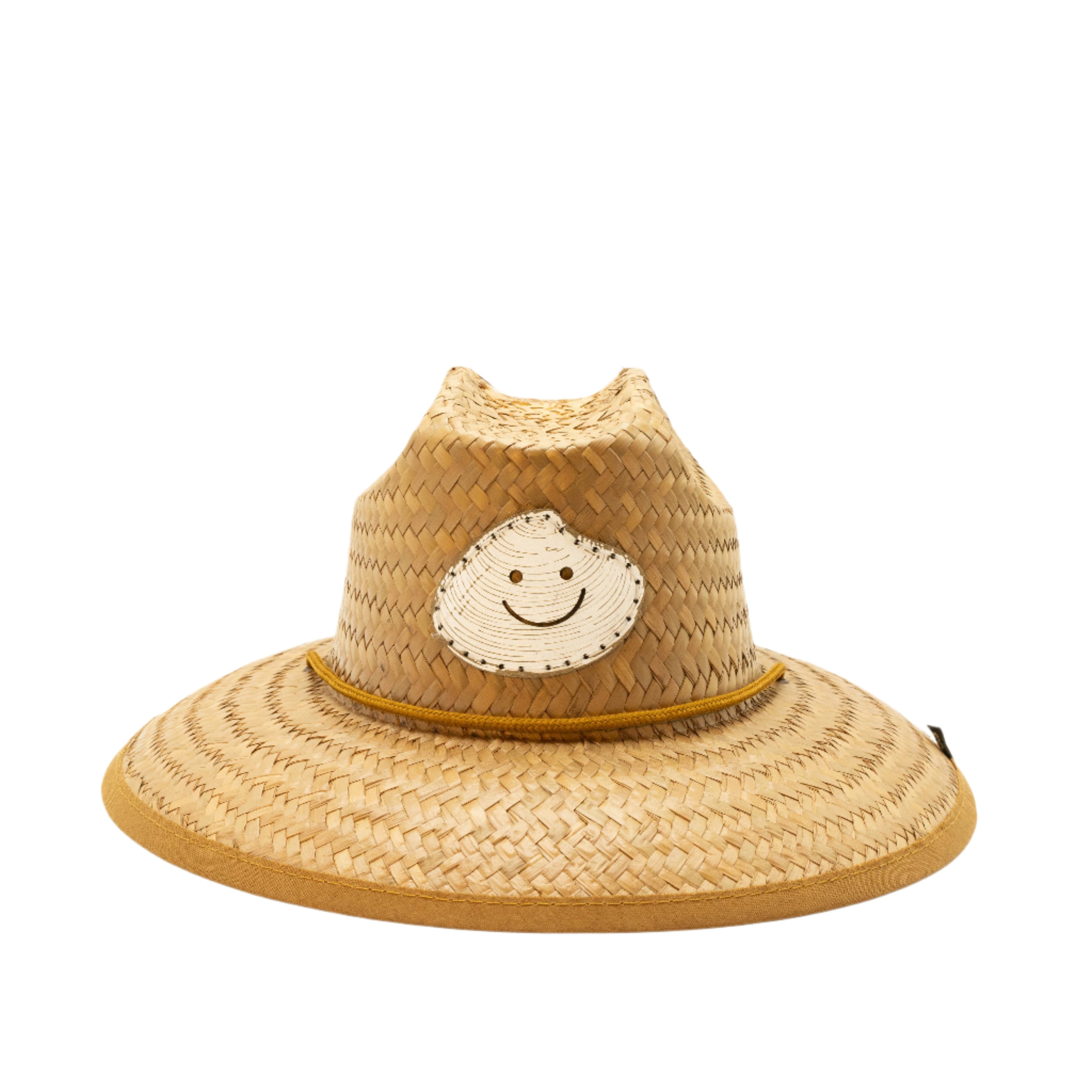 KIDS STRAW HAT - WHITE LEATHER HAPPY AS A CLAM