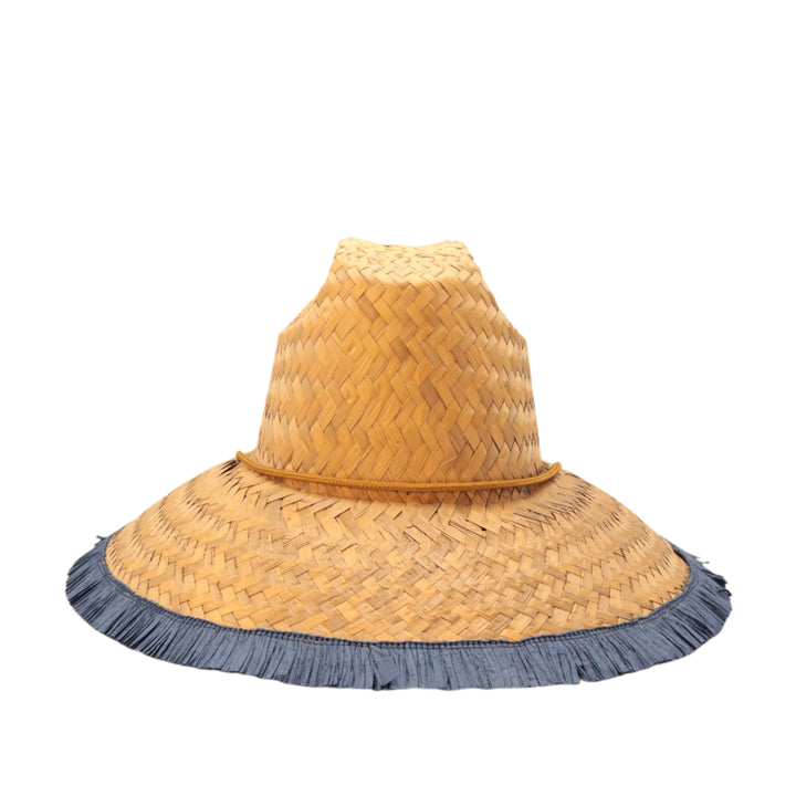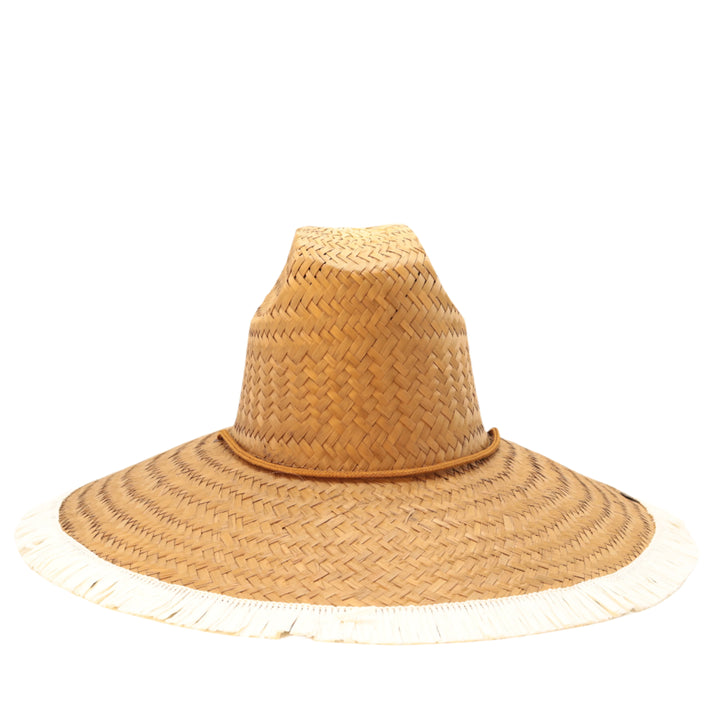 This classic woven straw lifeguard hat will keep you looking sporty and chic while its oversized brim provides the ultimate in sun protection. We've lined the edges in colorful raffia fringe.