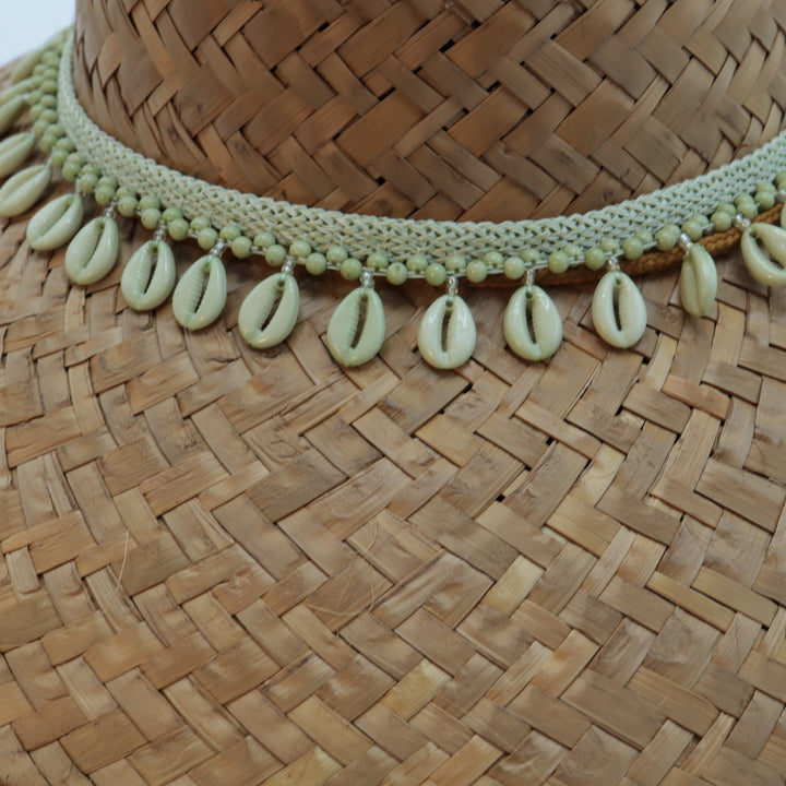 STRAW HAT - LT. GREEN COWRIE SHELL TRIM
