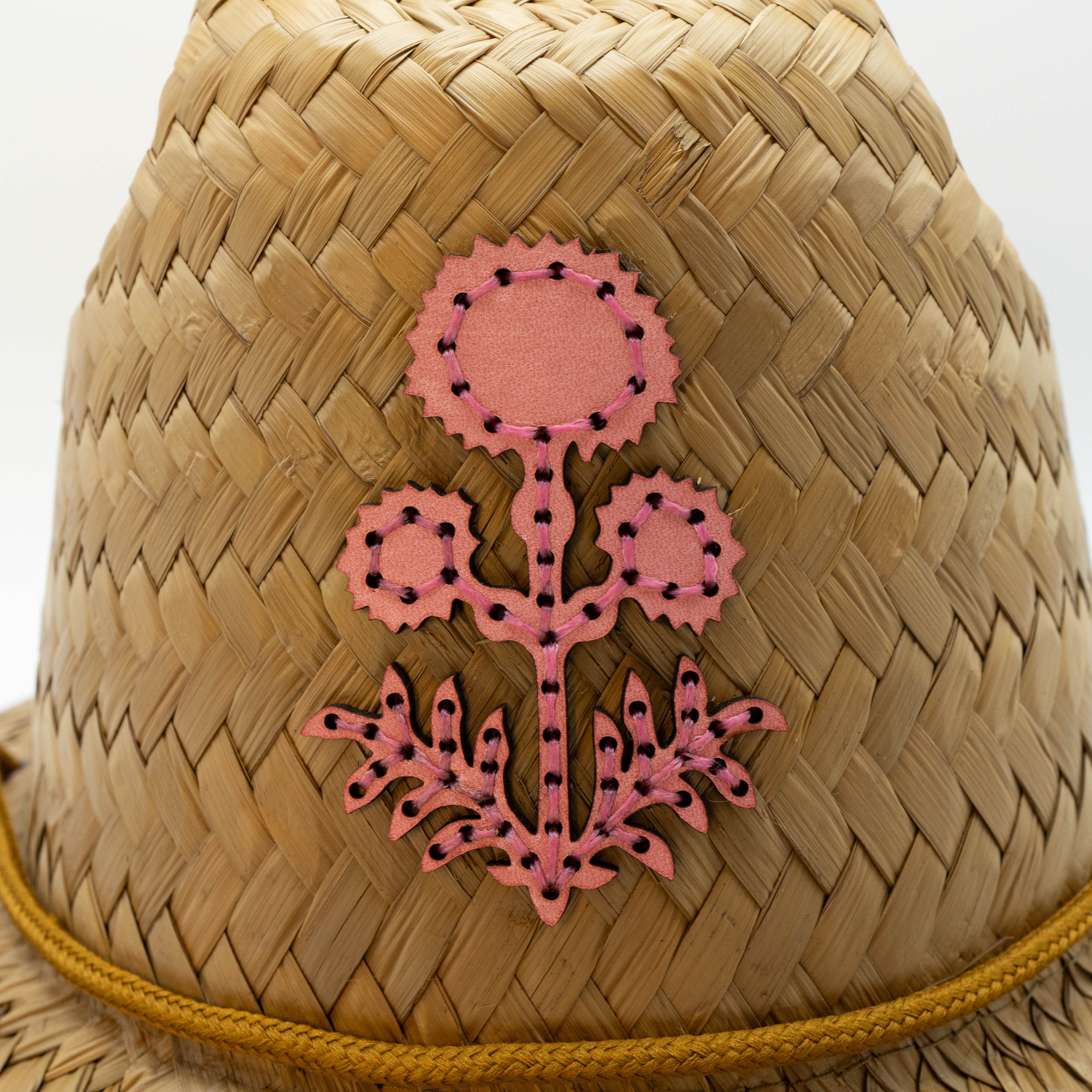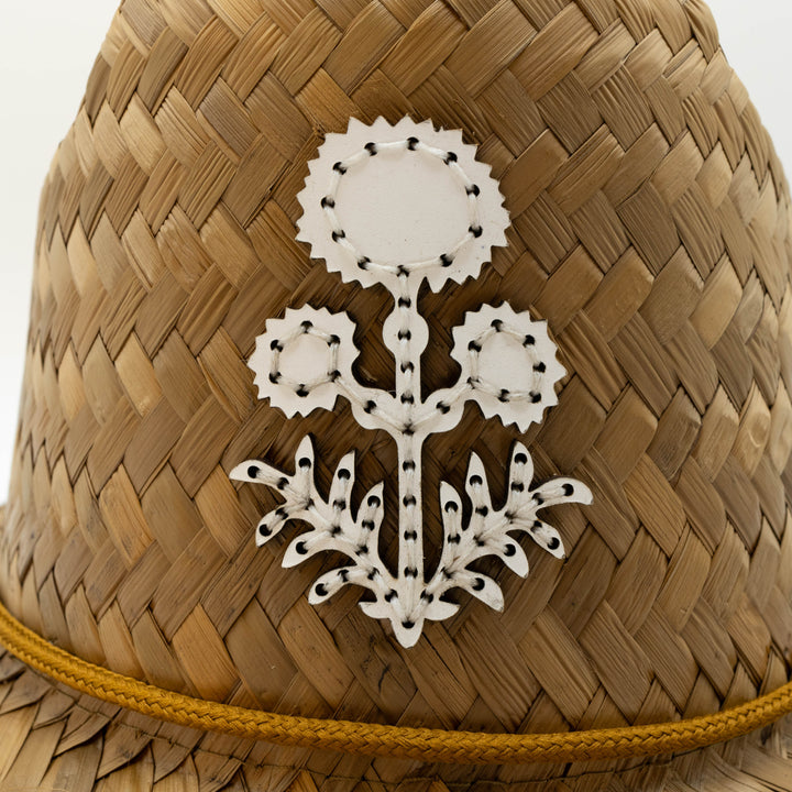 STRAW HATS - LEATHER THISTLE FLOWER